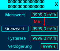 Das PopUp Grenzwert Min wird verwendet zur Anzeige und Einstellung eines minimalen Grenzwertes.