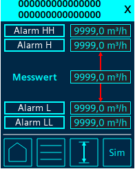 Über die Tasten "Alarm HH", "Alarm H", "Alarm L" und "Alarm LL" können die entsprechenden Grenzwerte aktiviert werden.