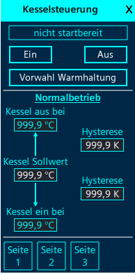 Das PopUp "Steuerung Heißwasserkessel" wird verwendet, um einen Heißwasserkessel zu steuern und die grundlegenden Parameter