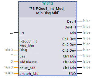 Dieser Baustein generiert automatisch die Meldungen aus dem F-Baustein "F-2oo3_Int_Med_Min" für eine Diagnose im nicht sicheren Teil und in den HMI's.