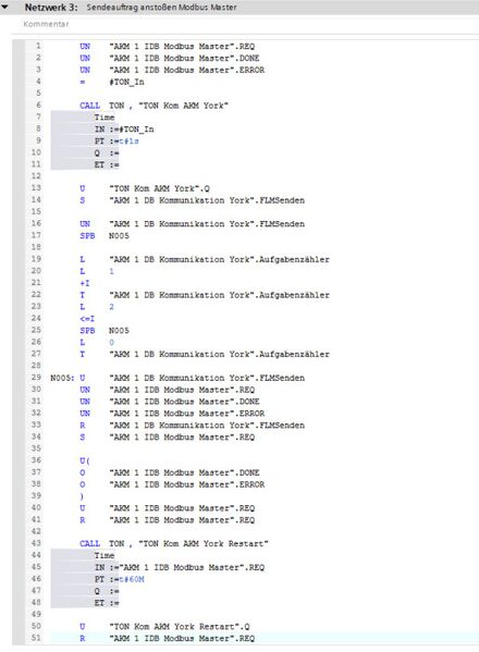 TIA-Portal Ablaufprogramm für Modbus RTU Kommunikation in AWL