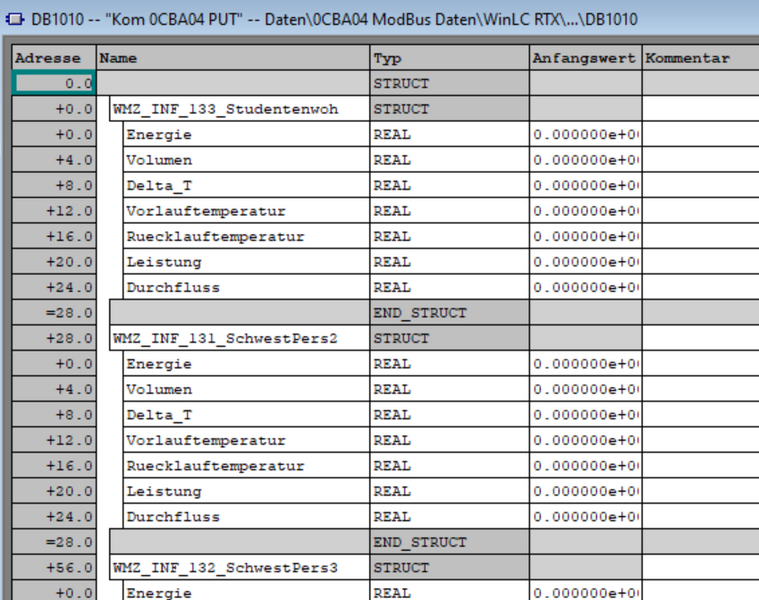 Datenbaustein mit Empfangsdaten für monatliche Zählerauslese