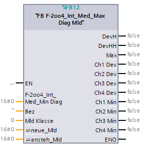 Dieser Baustein generiert automatisch die Meldungen aus dem F-Baustein "F-2oo4_Int_Med_Max" für eine Diagnose im nicht sicheren Teil und in den HMI's.