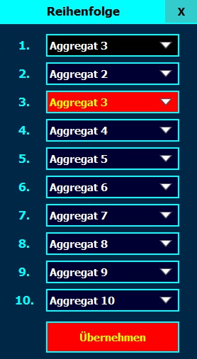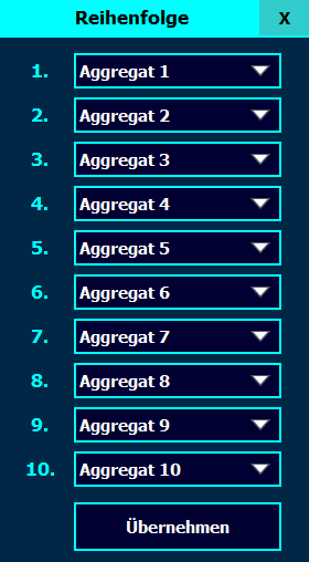 Hier wird pro Aggregat (je nach Vorgabe der Anzahl der vorhandenen Aggregate) ein DropDown-Menü dargestellt.