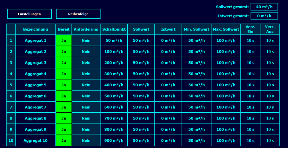 Im oberen rechten Bereich wird der Gesamtsollwert, sowie der Gesamtistwert der Folgeschaltung angezeigt.