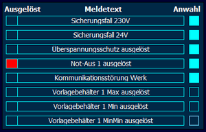 Im rechten Bereich können die Meldungen an- und abgewählt werden. Abgewählte Meldungen können nicht mehr ausgelöst werden.