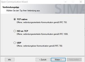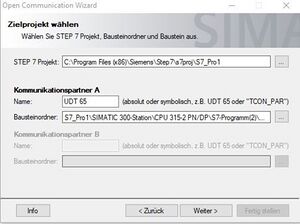 Um die Verbindungsinformationen anzulegen bzw. bereitzustellen muss zunächst über den "Open Communication Wizard" der Datentyp UDT65, indem alle nötigen Informationen hinterlegt sind, erzeugt werden.