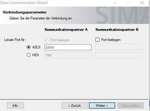 In diesem Fall muss die lokale Portnummer angegeben werden, damit der aktive Partner die Verbindung zur CPU aufbauen kann.