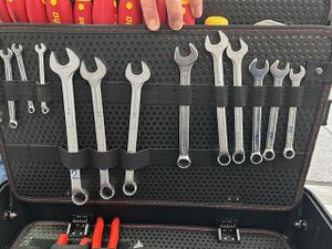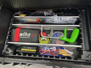 Es gibt aktuell 2 Werkzeugkoffer und eine Werkzeugtasche. Diese stehen im Raum hinter der Garderobe. Solltet ihr auf Baustellen fahren oder Werkzeug benötigen, können diese ausgeliehen werden. Dazu tragt ihr die Entnahme in den Entnahmeschein im Aktenraum ein.
